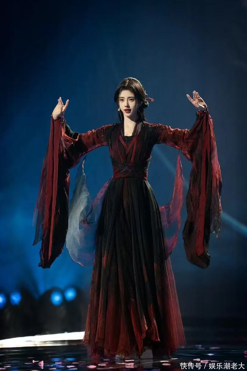 除了时尚领域,舞台才是检验一个艺人实力的核心场域。鞠婧祎在2025年暑期的超级晚会上,带着《锦鲤抄》的复演再次出现在大众视野中。她以一袭黑纱金纹长裙亮相,裙摆的流动与鱼鳍般的设计,配合舞台上的灯光投影,营造出极强的视觉冲击力。这不仅是一次表演,更像是一场艺术化的叙事:她用肢体、用声线,将东方文化与现代舞台美学融合,成就了一个既惊艳又有深度的表演。